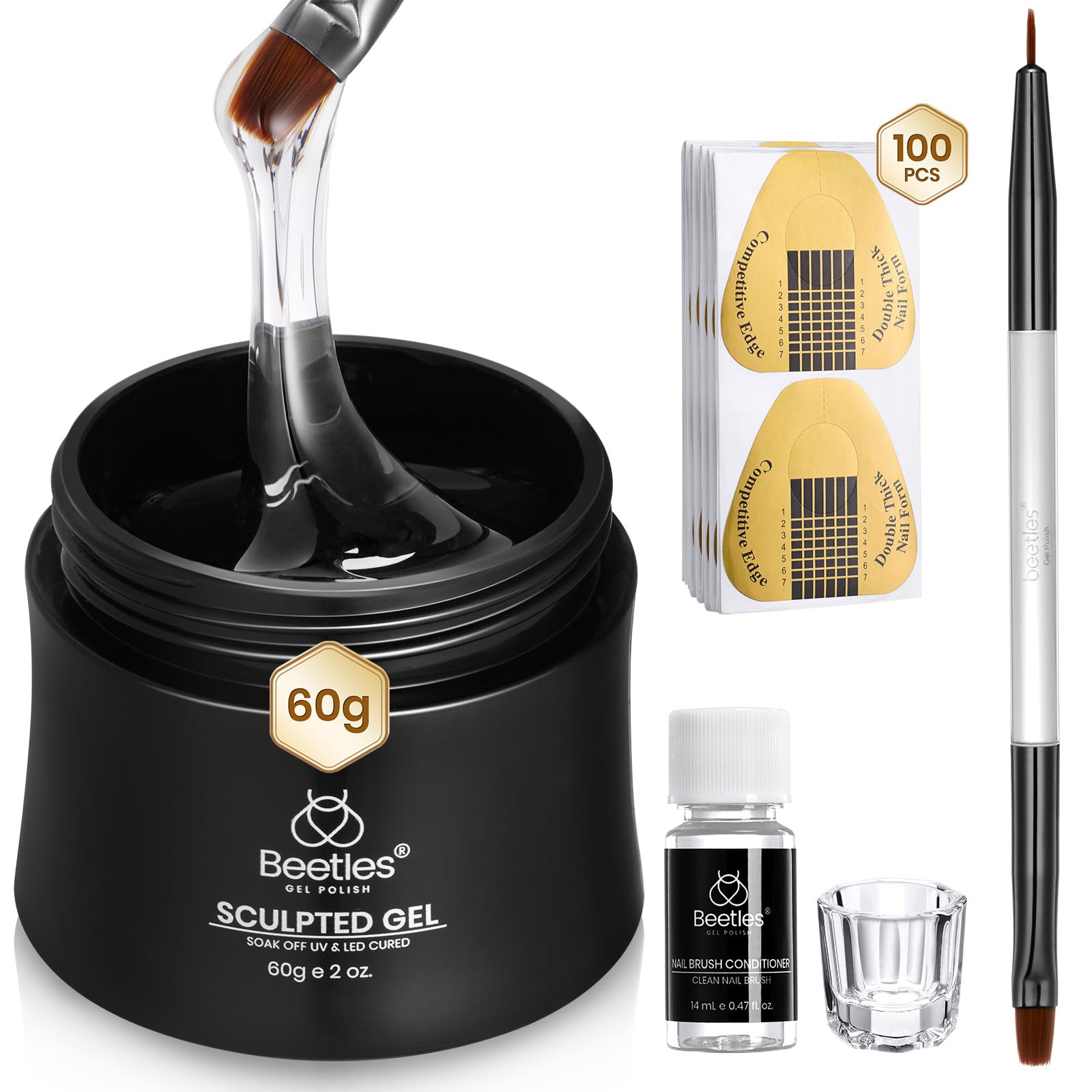 - 【10-in-1 Beetles Sculpted Gel Set】This builder nail gel in pot can give you amazing results during your DIY manicure. Used for nail extensions to any length; as building gel for fuller nails; as BASE COAT or STRENGTHJEN GEL to increase the hardness of nails, making nails less likely to break; mixed with glitter powder to a Hybrid Gel, etc..