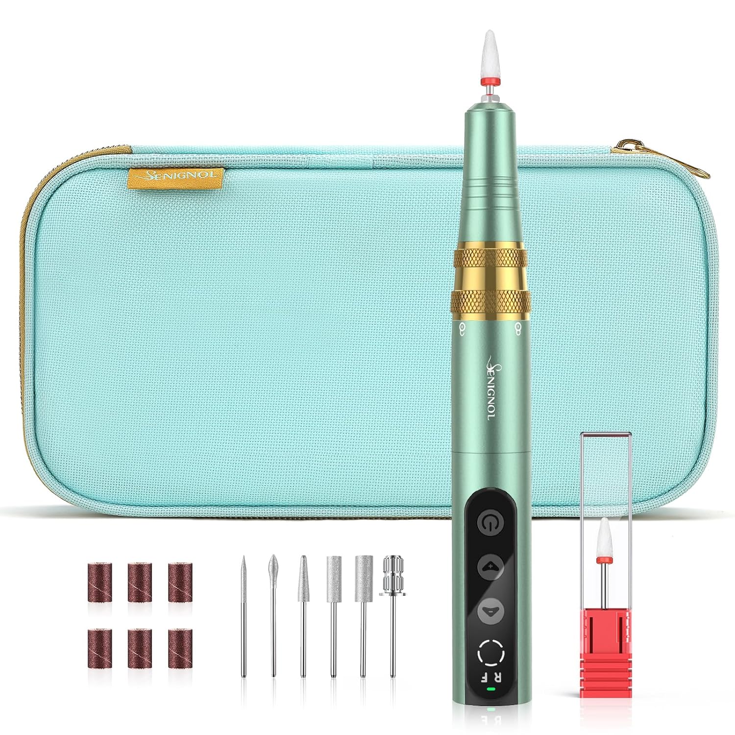 Electric Nail Drill Cordless, 35000RPM Nail Drill Machine with Nail Drill Bits, USB Portable Efile for Acrylic Gel Nails, Rechargeable Manicure Pedicure Kit Great for Home Use Beginners,Green