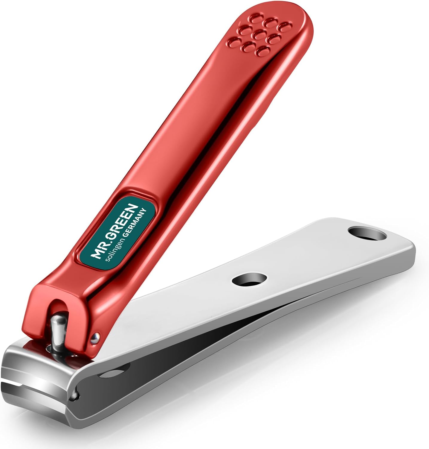 MR.GREEN Nail Clippers Curved Blades Fingernail Cutter Nippers Manicure Scissors Stainless Steel Pedicure Tools with Nail Flies (Medium-Red)