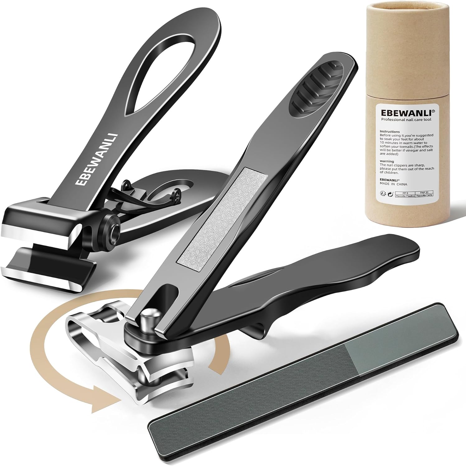 Nail Clipper Set, 360 Degree Rotary Fingernail and 17mm Wide Jaw Opening Straight Toenail Clippers Cutters for Thick Nails, Toe Nail Clippers for Men Seniors Women