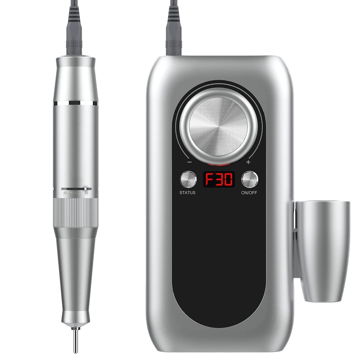 Portable Electric Nail Drill, Professional Nail File Machine, Cordless Rechargeable Nail Drill E Filer for Gel Acrylic Nails, Nail Gel Remove Polish Manicure for Salon with 6 Bits Kit, Silver