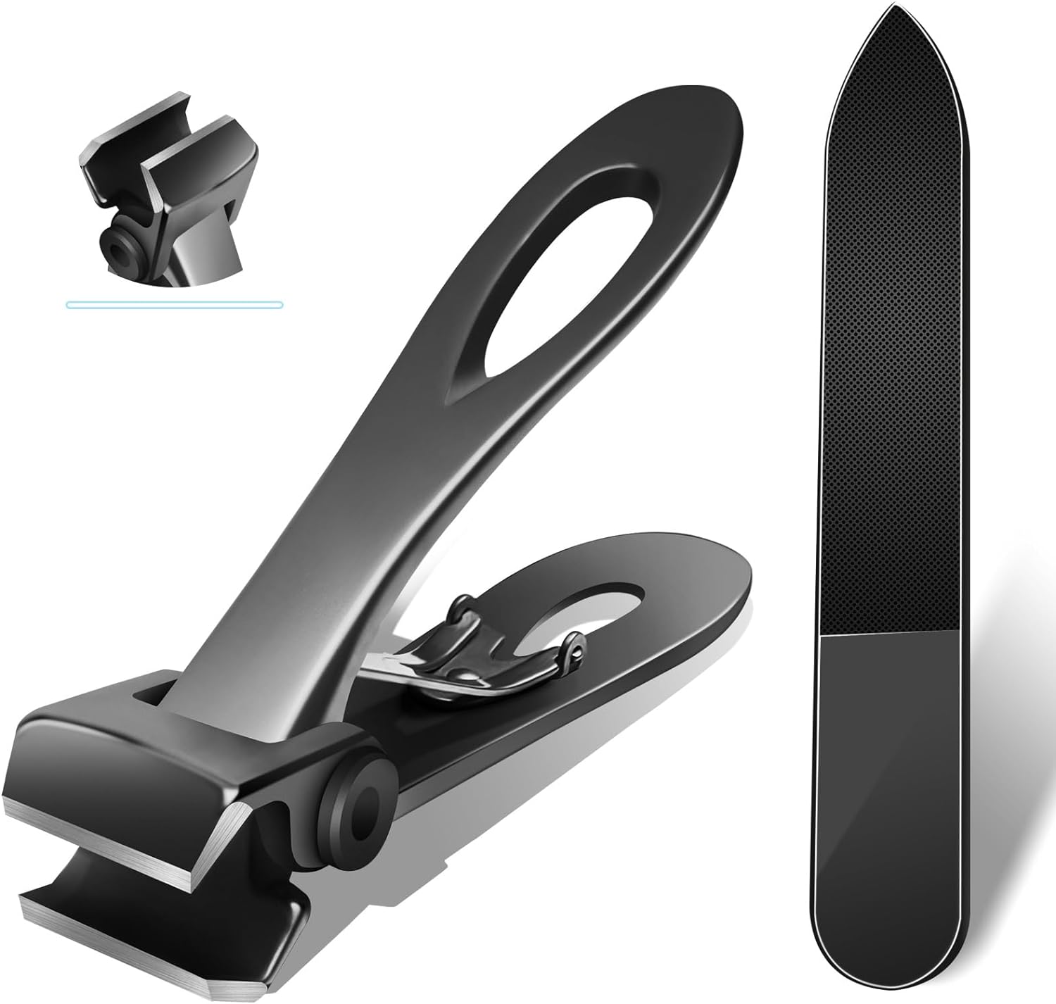 【Buy with Confidence】The package contains black straight edge nail clippers and black transparent nano nail file. If the nail clippers you receive do not meet our standards, or you are not satisfied with the nail clippers, just contact us for an immediate replacement or Refund. 1 x extra large nail clipper, 1 x nail file, gift box.